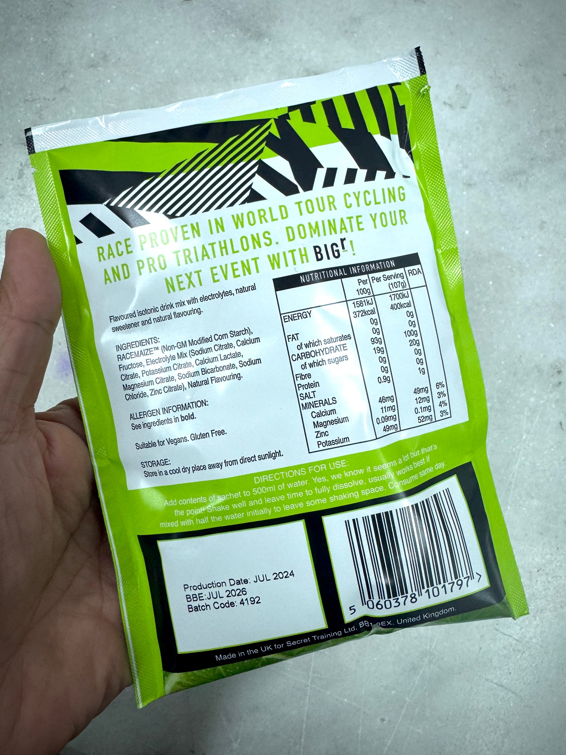 BiGr Endurance Mix is an advanced formulation of the BiG Energy mix, designed to optimize a higher carbohydrate concentration for even bigger energy. Each box contains 10 x 107g sachets, perfect for when you need a significant energy boost in every sip but have limited capacity to carry multiple bottles. This citrus-flavored isotonic drink, enriched with electrolytes, delivers 100g of carbohydrates in a 500ml bottle from a single 107g serving. Made with natural flavors and sweeteners, it's not only refreshing but also suitable for vegans.